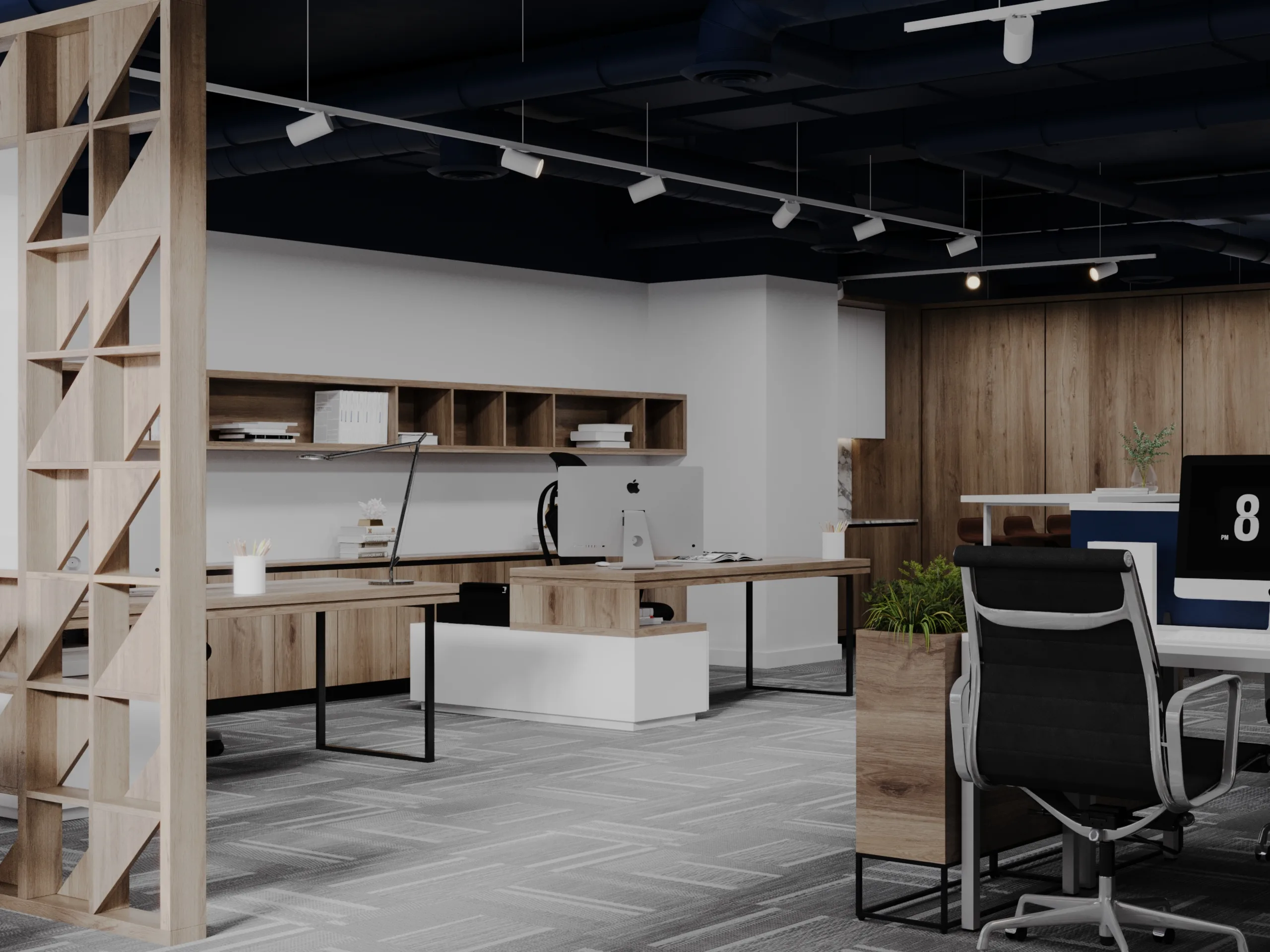 Our expertise as an office fit out company in Dubai enables us to deliver the best office fit-out solution in Dubai according to each client’s needs. This Business Bay Office fitout project highlights collaborative and open areas, balanced with private work zones, ensuring efficiency and comfort for the team's daily tasks.